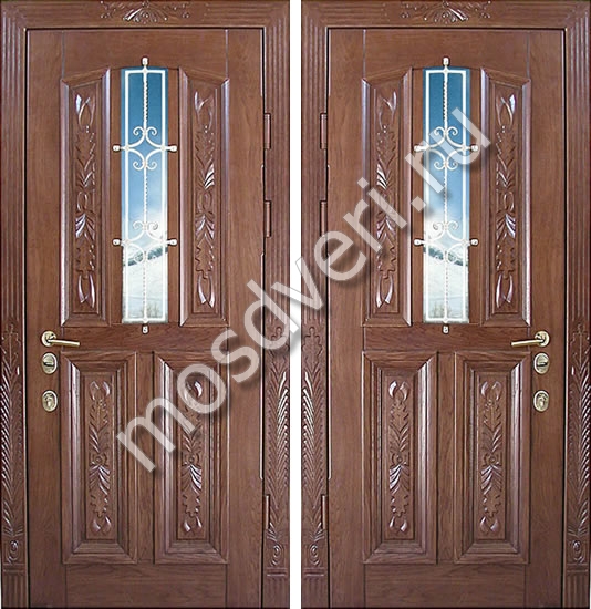 Элитная стальная дверь с массивом со стеклопакетом, ковкой и резьбой по дереву — купите сегодня! Напишите менеджеру, и получите бесплатную консультацию в течение 15 минут. Выезд специалиста — по вашему графику!